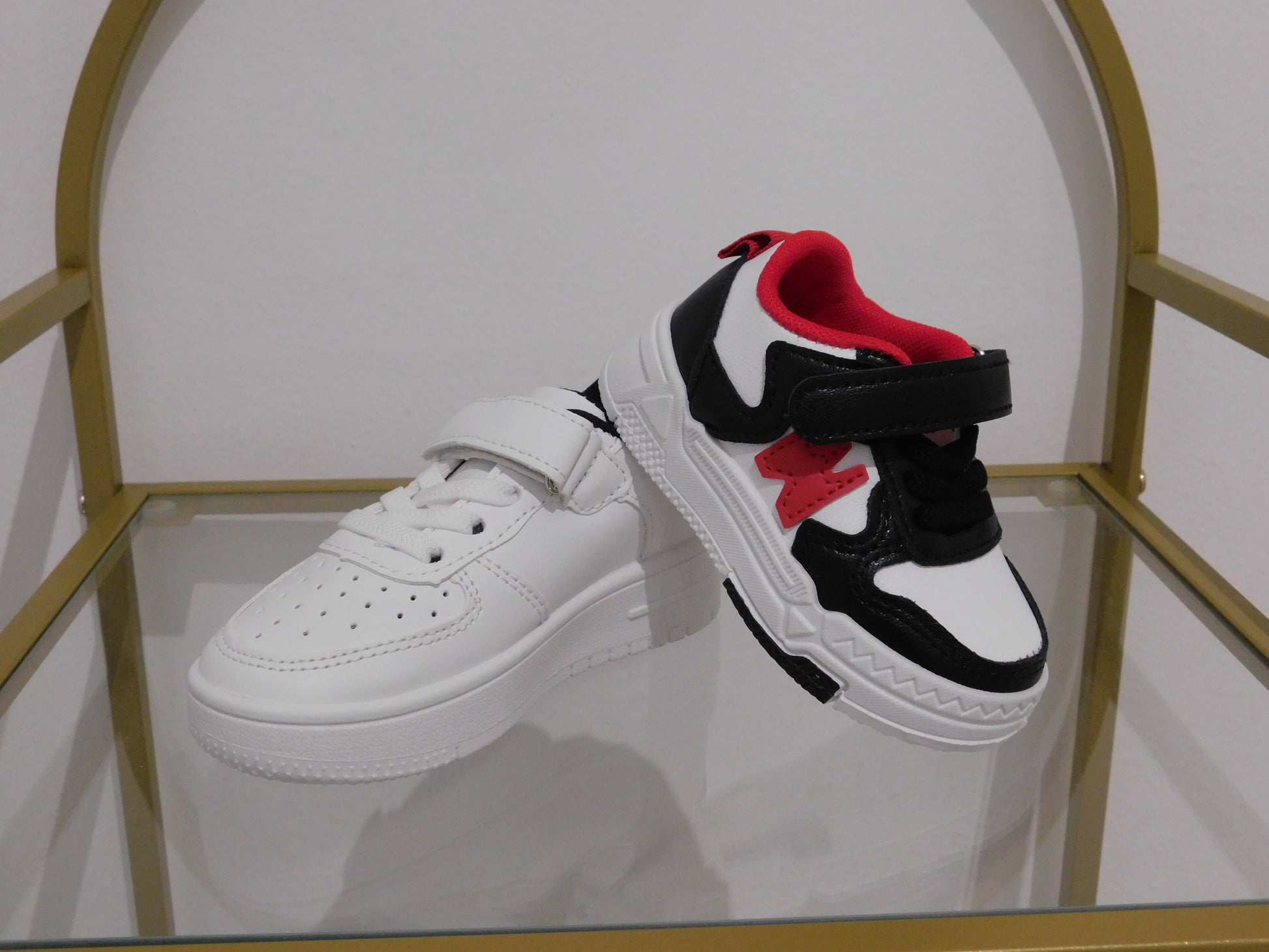 Scarpe da ginnastica bianche nere rosse dal 20 al 25 fronte liscio