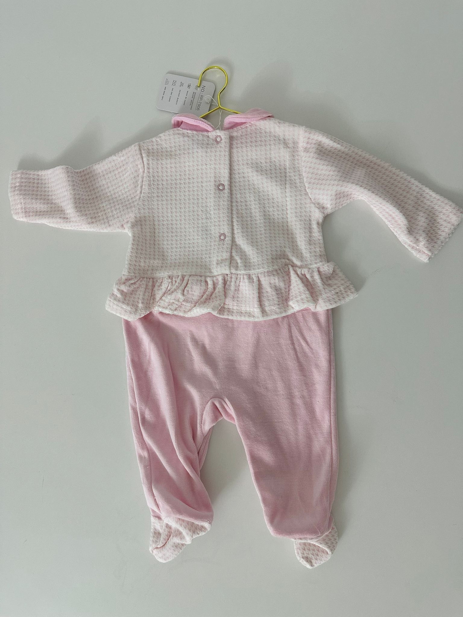 Tutina in ciniglia rosa con lettera A a quadretti bianco e rosa