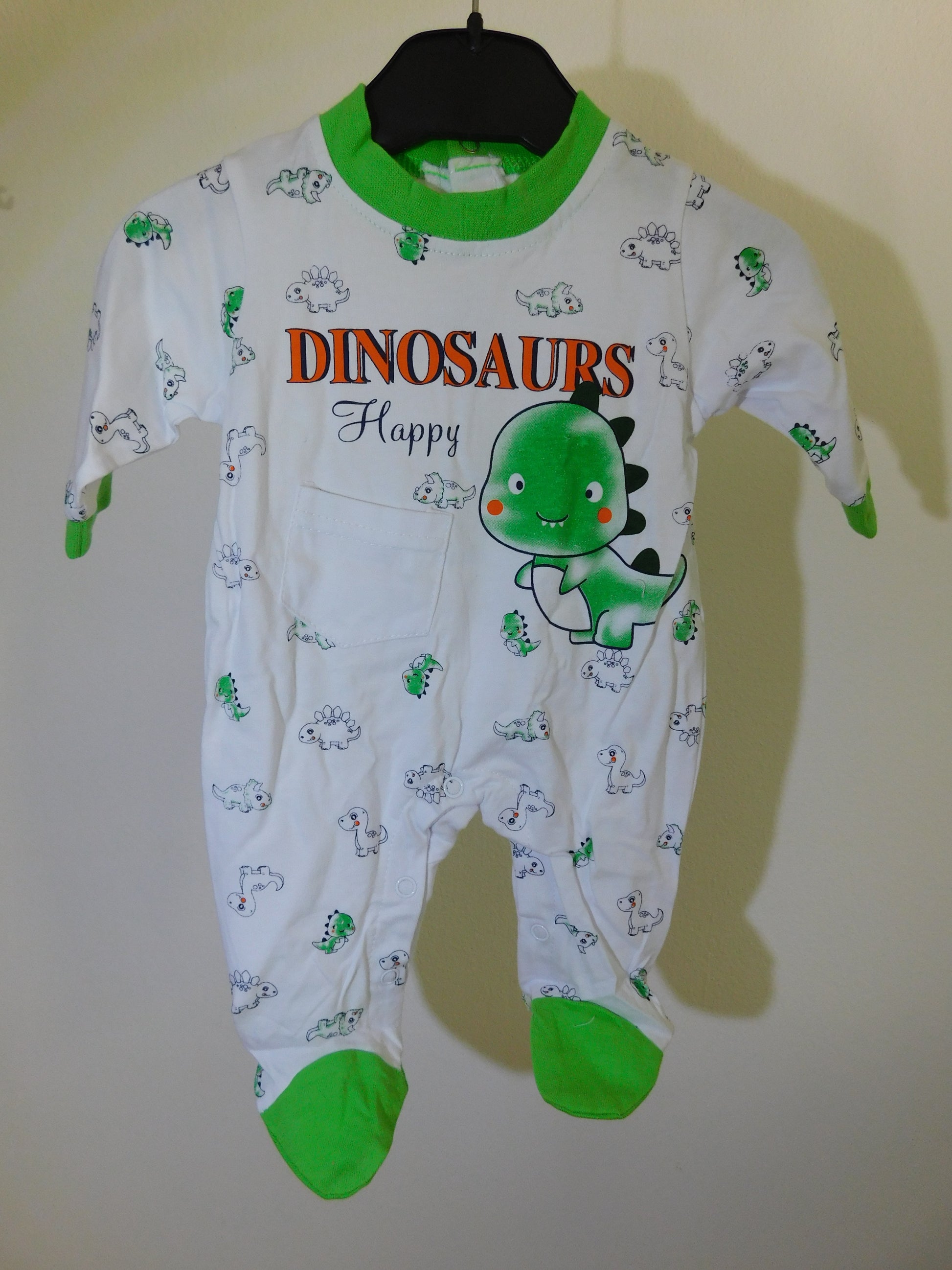 Tutina lunga in cotone con stampa draghetto bianca e verde