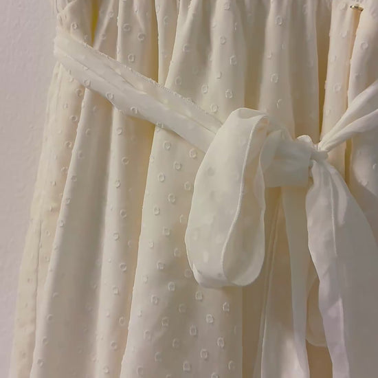 Vestito elegante bianco a canotta con cintura in vita pois sulla gonna